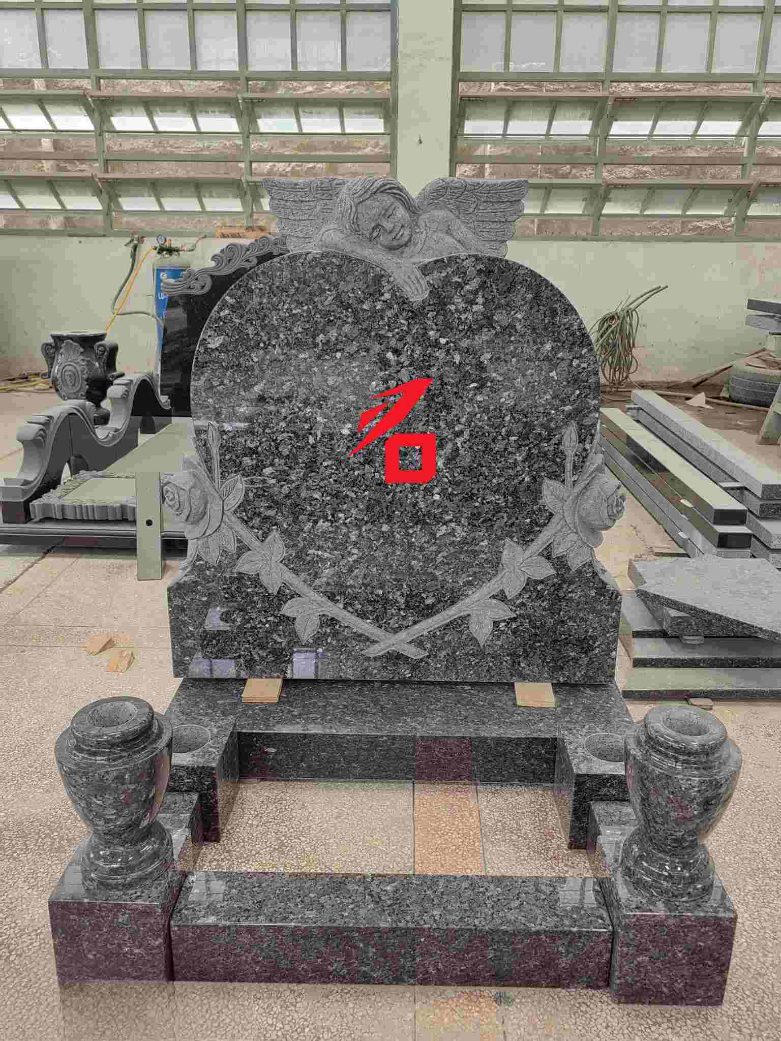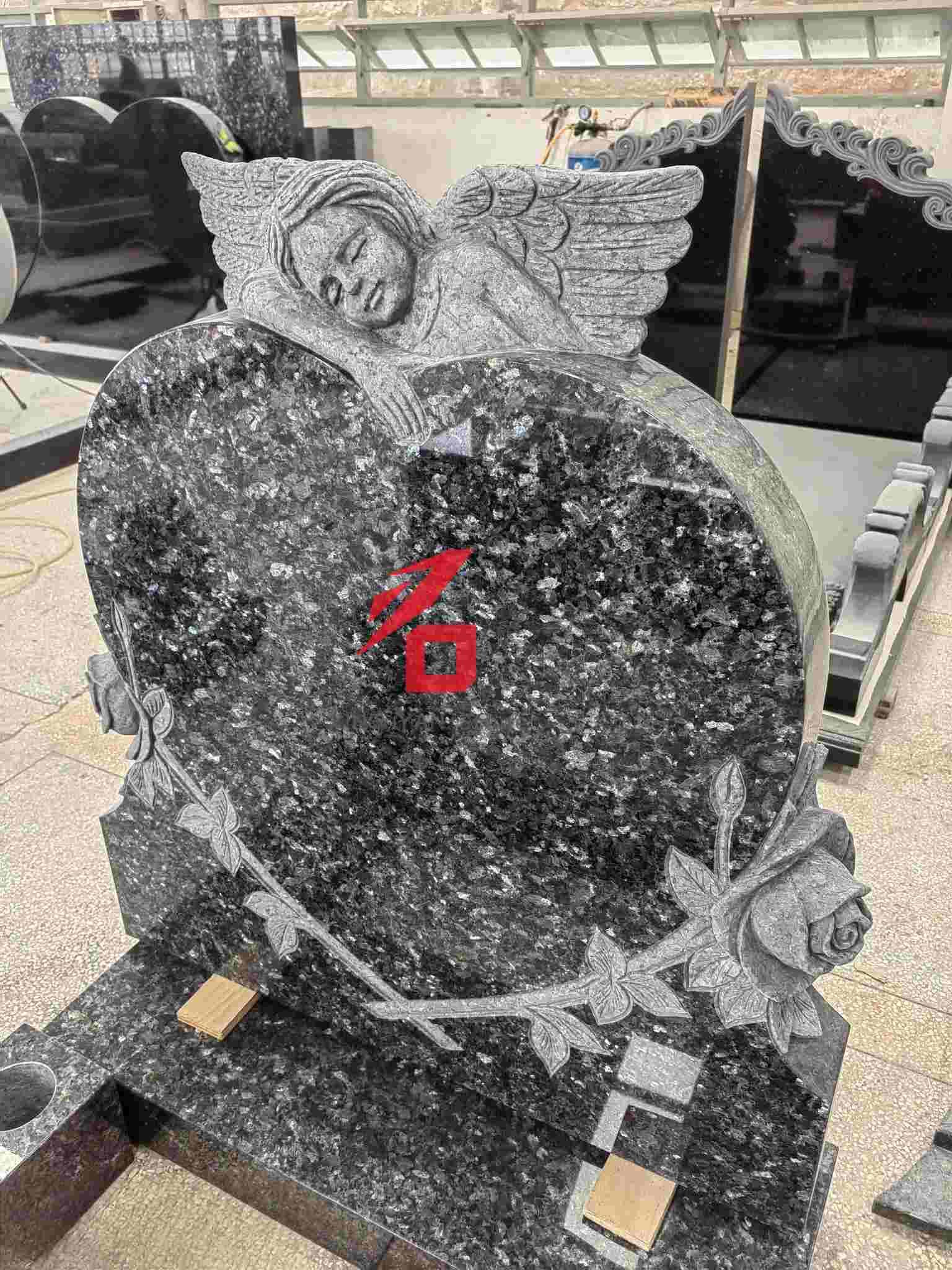 Дизайн: Главное надгробие имеет форму сердца, увенчанное скульптурой ангела и окруженное рельефами из роз. Общий стиль теплый и запоминающийся;